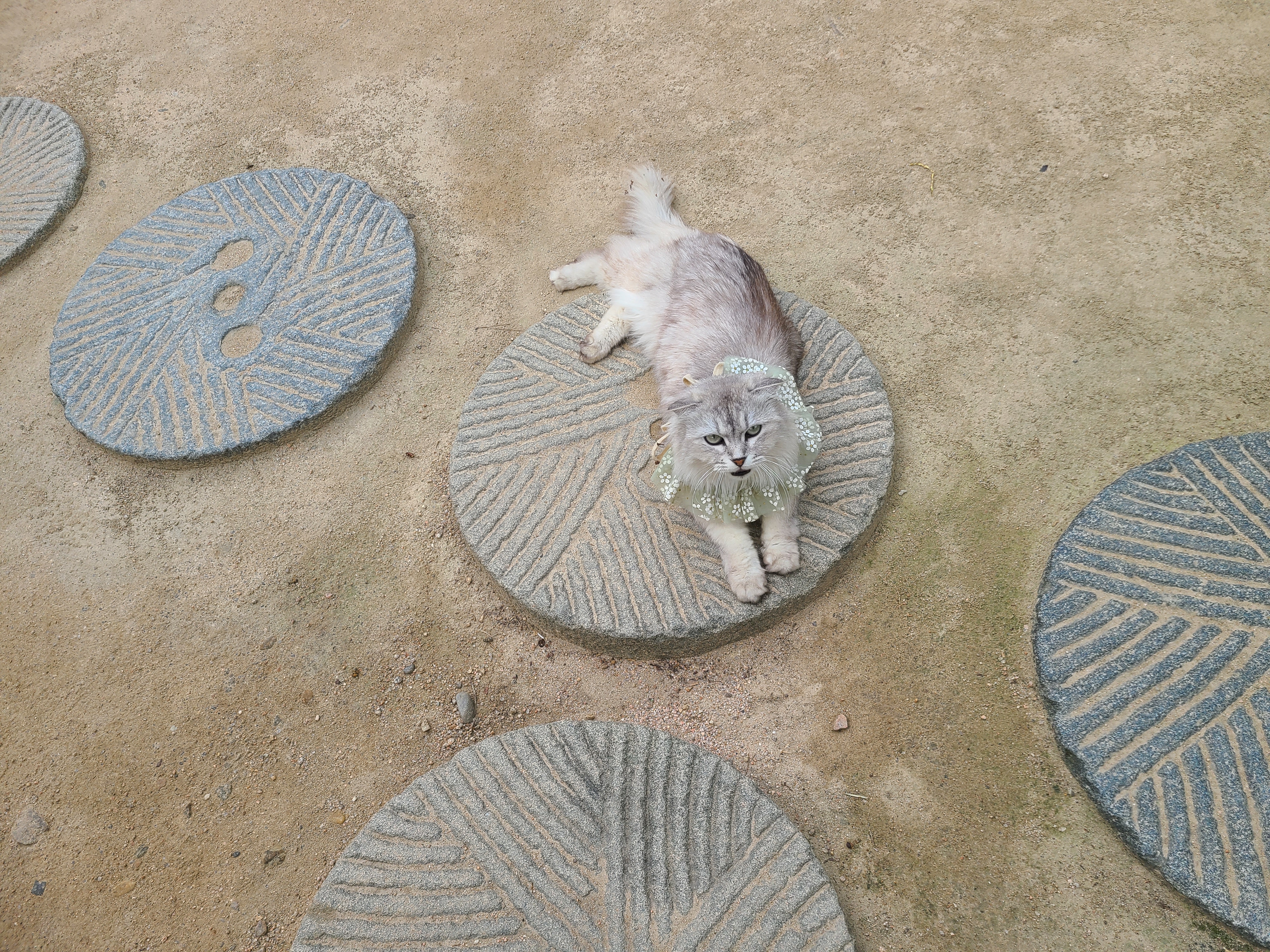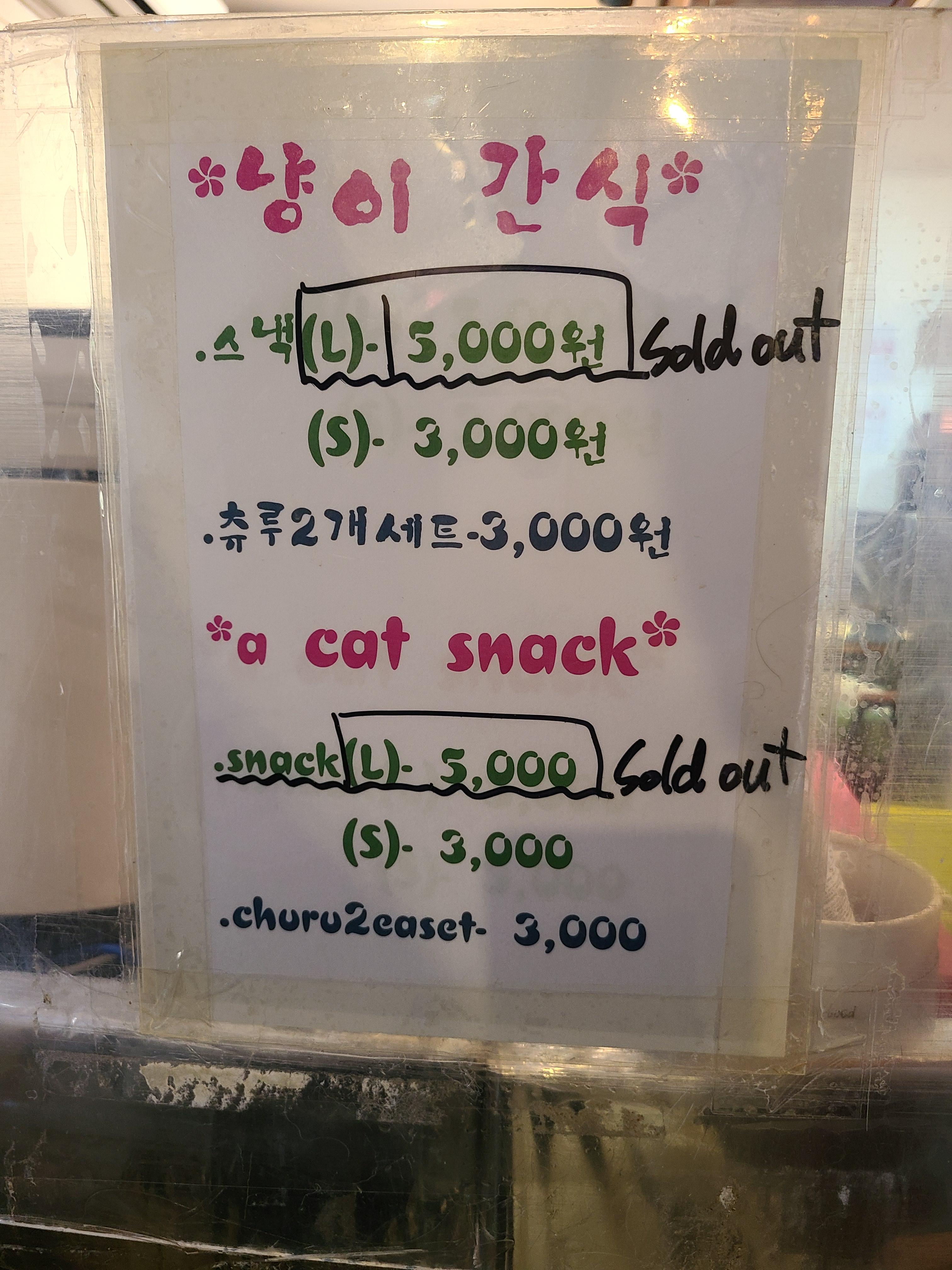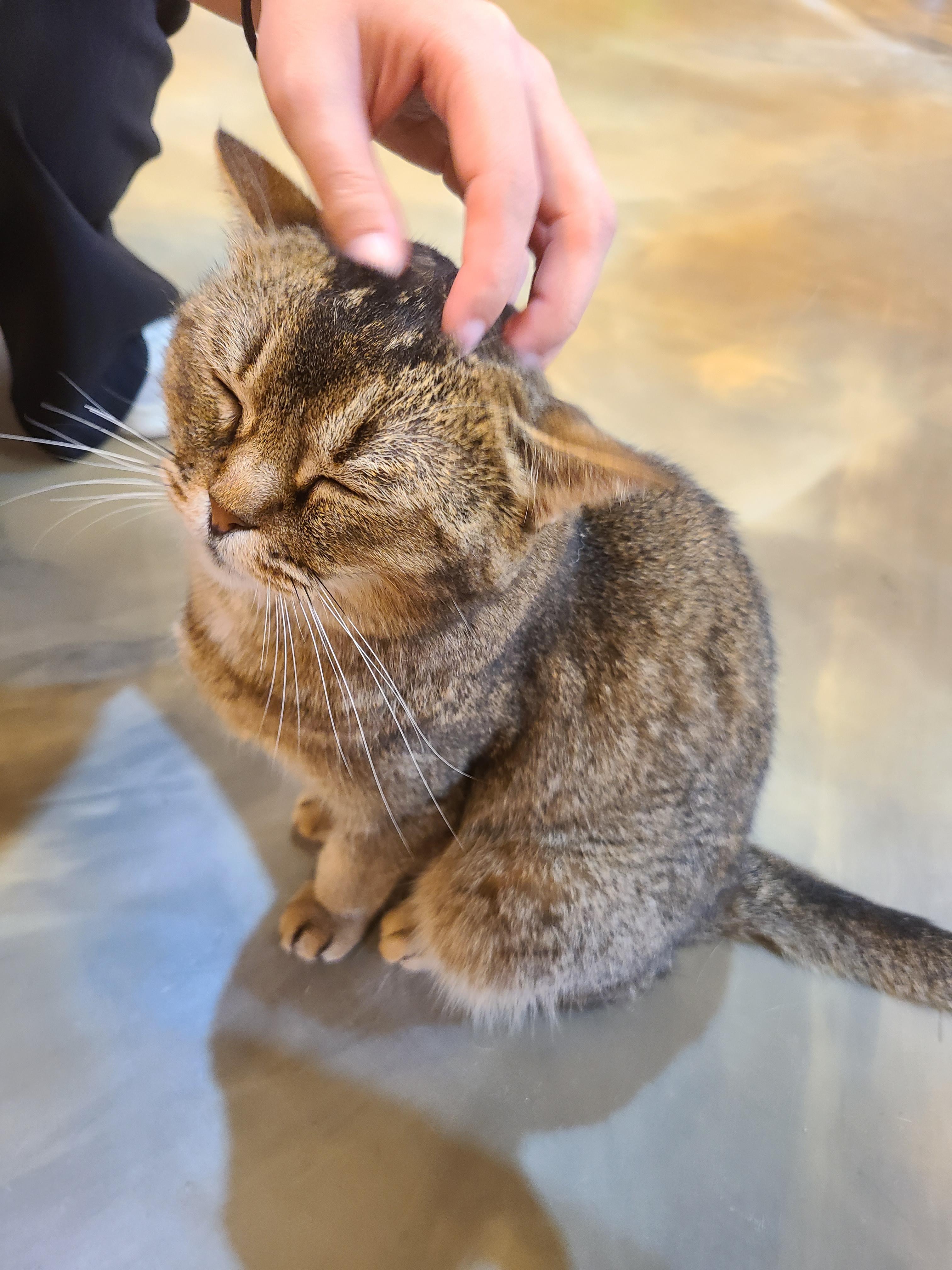 입장을 반겨주는 고양이 ㅎㅎ 목에 목도리를 두르고 있는 아이들은 예민한 아이들이라고 하시더라고요! 개인적으로 느끼기에는 조금 예민하긴 한데 막 물거나 사납지는 않았습니다 :)