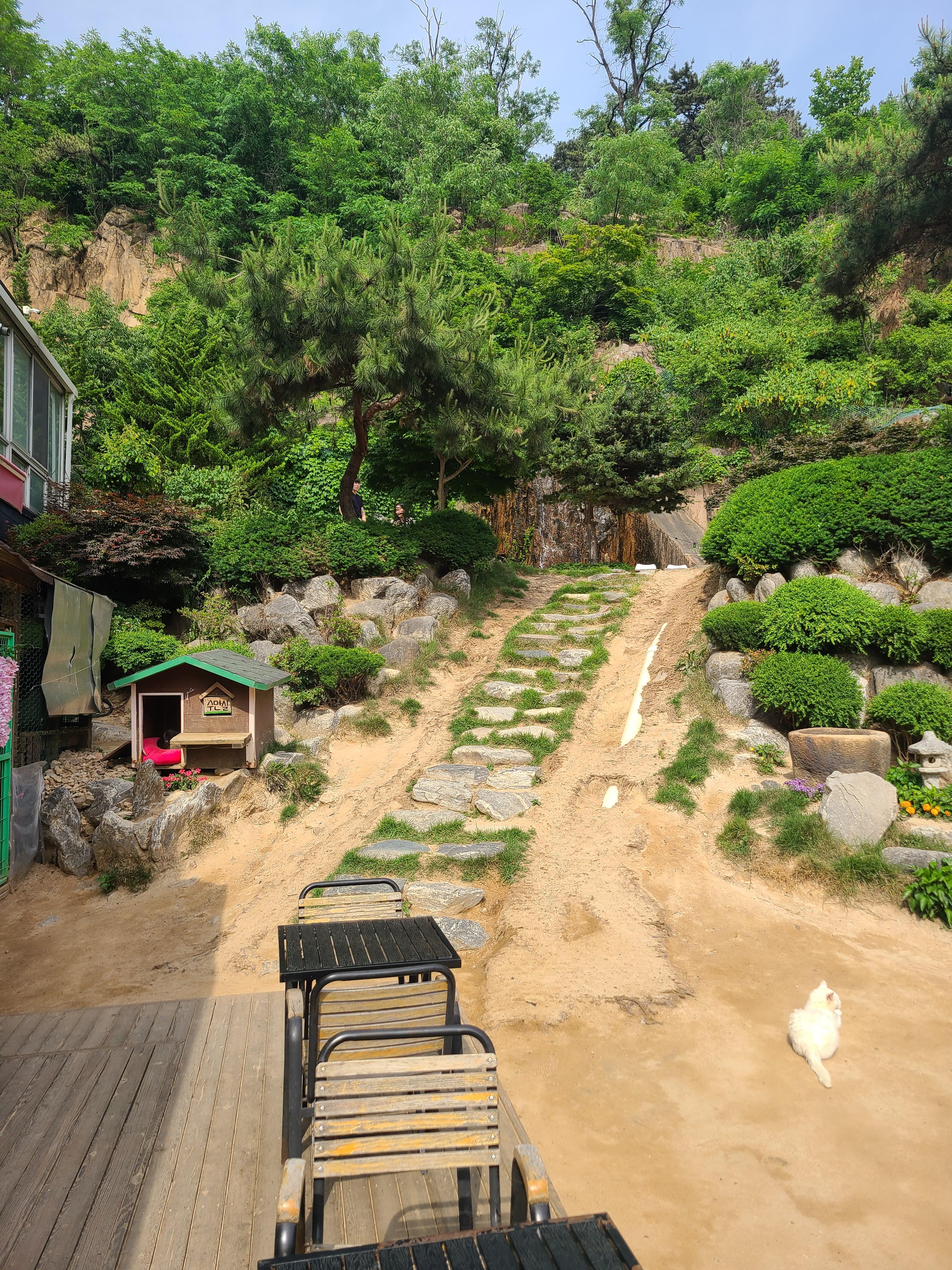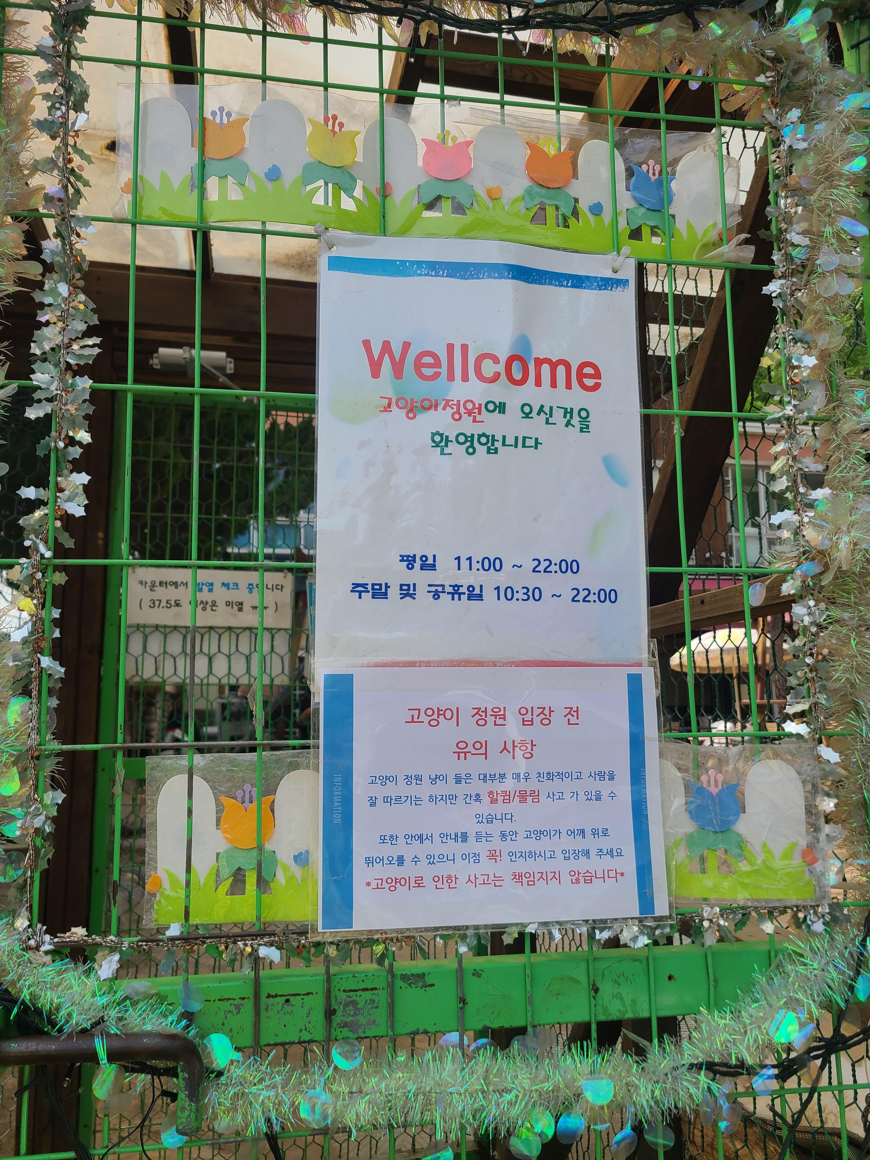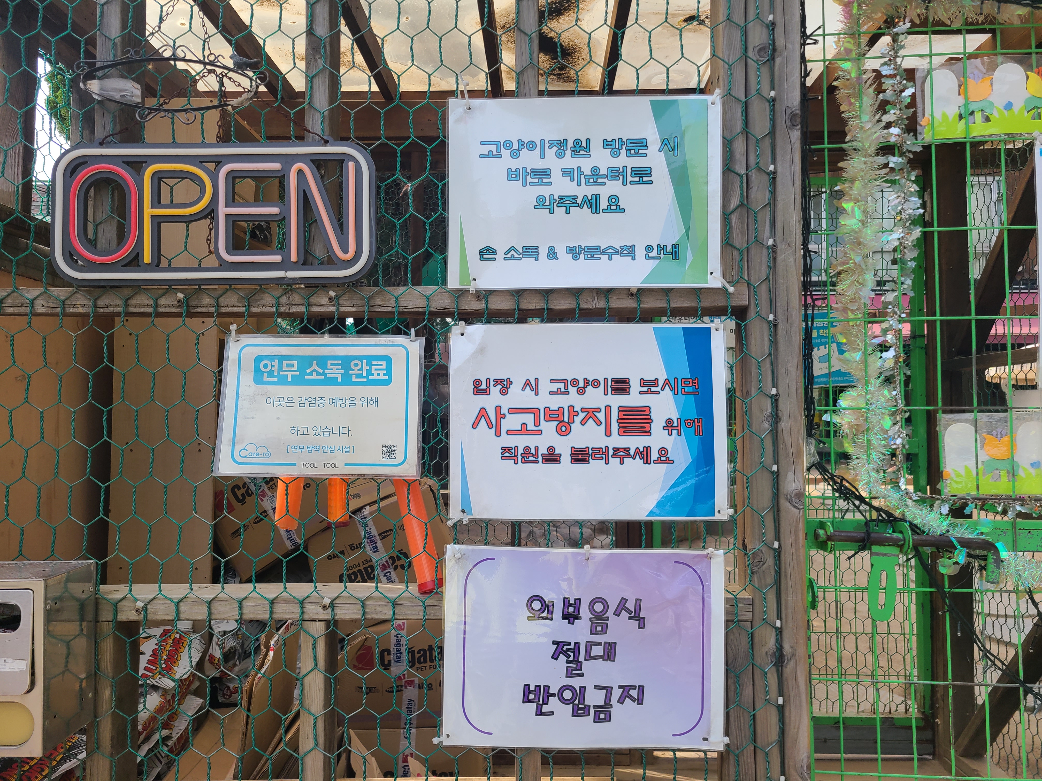 고양이들 눈꼽도 없고 관리를 정말 잘해주는 것 같더라고요! 하나 단점으로는 저희가 방문했을 때 매장 안은 살짝 이상한 냄새가 나더라고요 애기들 배변 냄새는 아니고... 수건 잘못 말렸을 때 나는 냄새?? 그래서 저희는 자리에 앉지는 않고 야외를 돌아다녔어요 ㅎㅎ