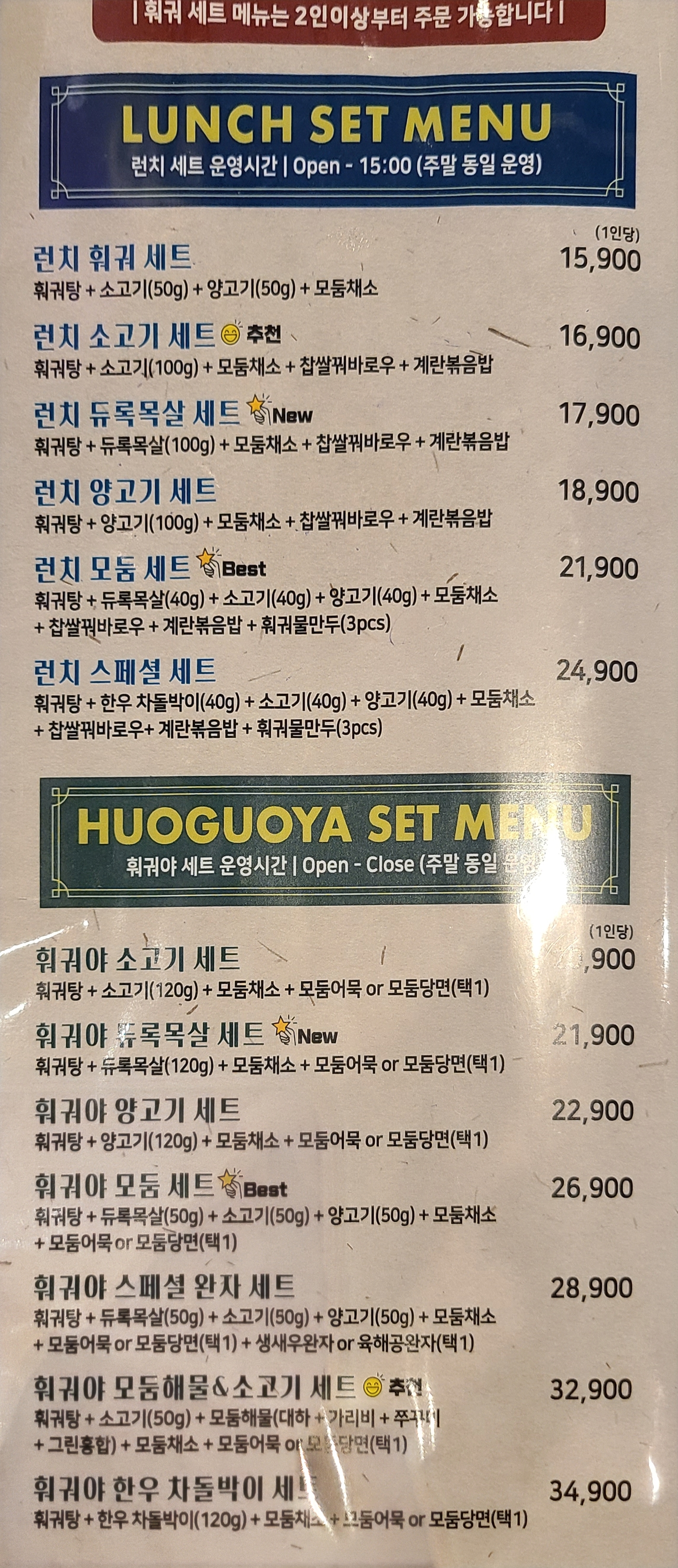 처음먹어본 훠궈였는데 매우 만족하였습니다. 세트로 시켜서 다양한 음식을 맛볼 수 있었고, 매장 위생이나 서비스 품질도 매우 만족하였습니다. 다음에 방문하게 되면 꼭! 토마토탕을 도전해볼까 합니다 :)