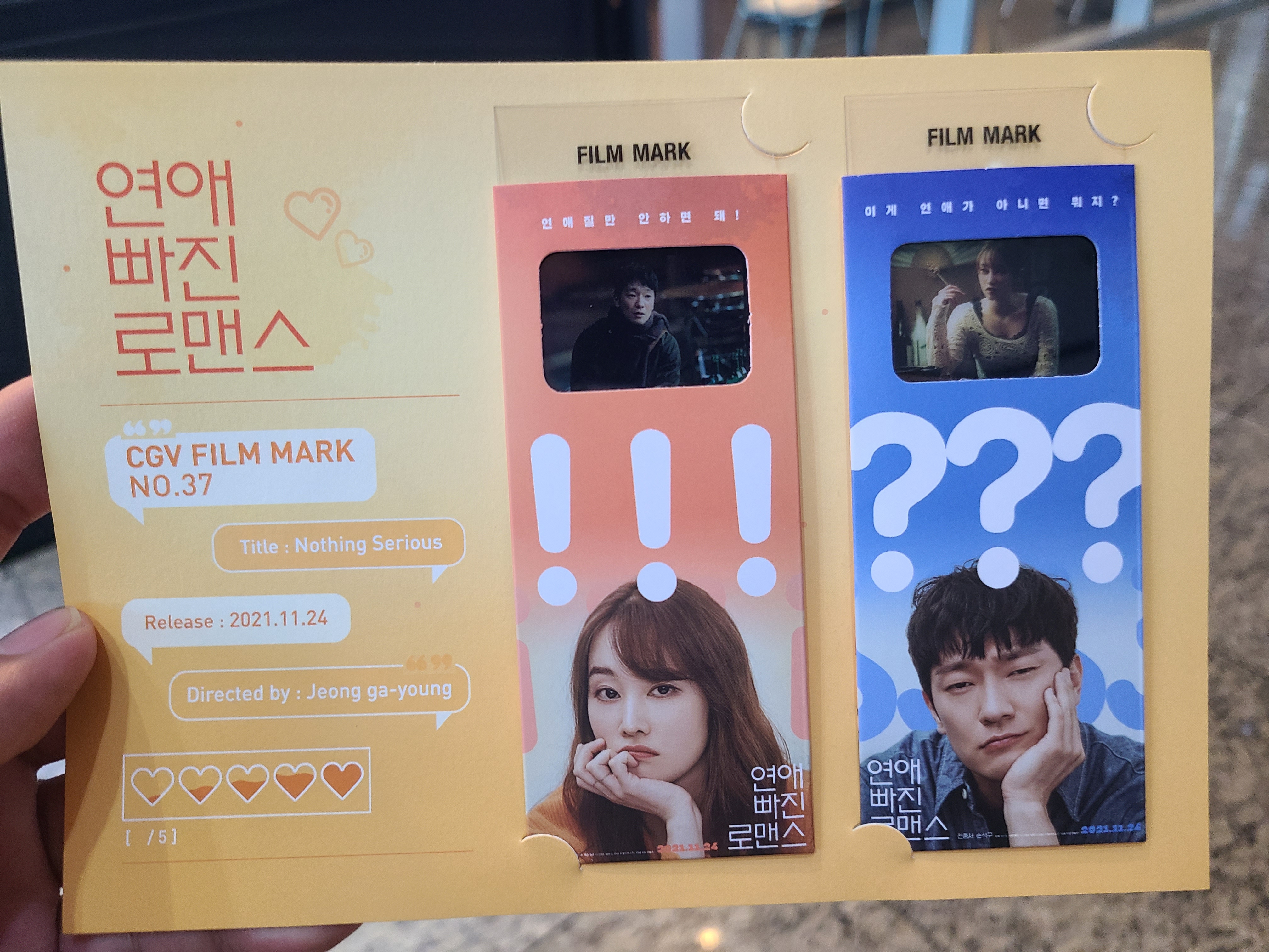 CGV에서 관람 시 이벤트로 위 사진 같은 필름 마크를 선착순으로 증정해줍니다.