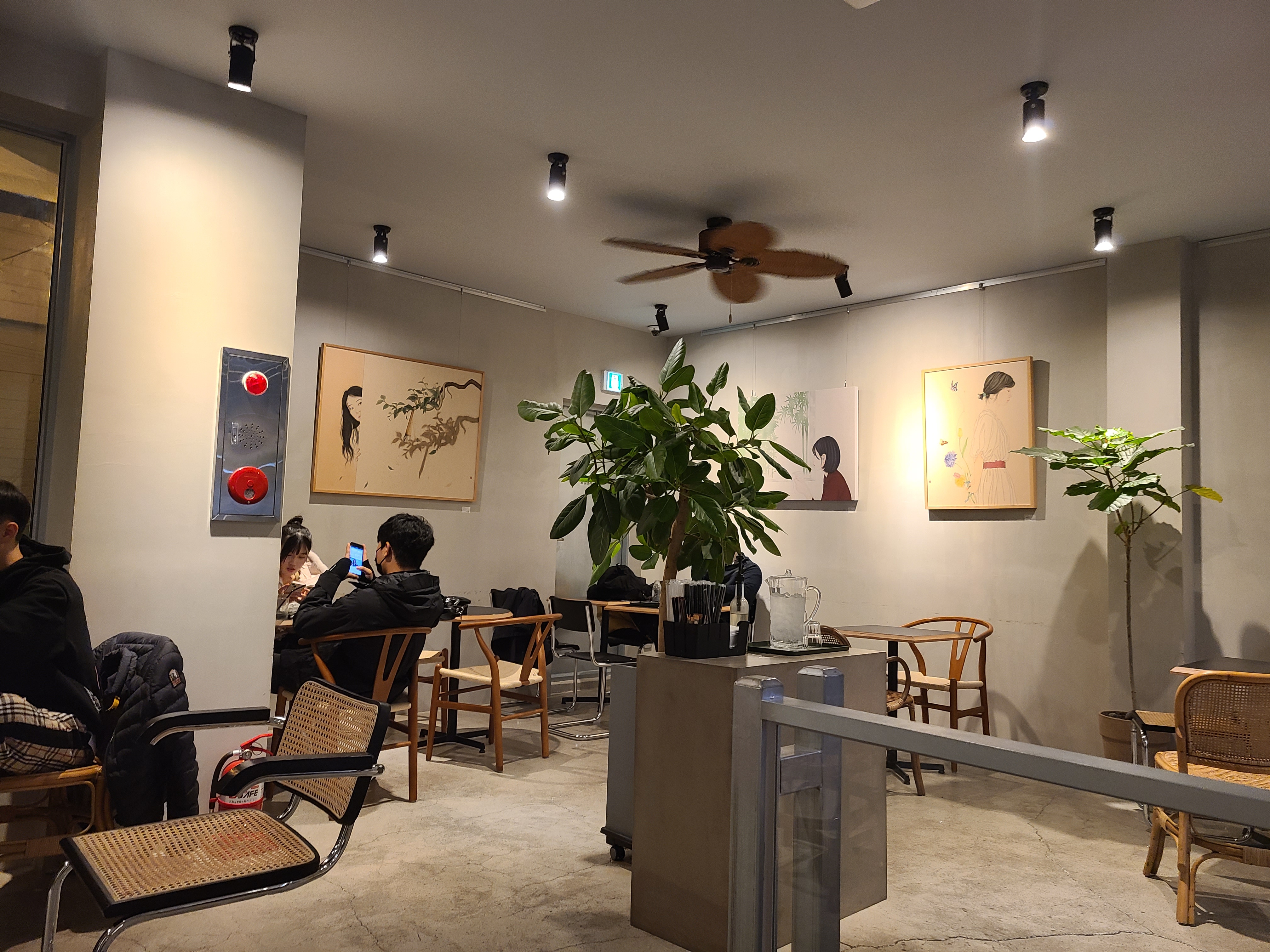 전에 왔을 때는 위 사진처럼 입구 바로 우측에 있는 공간에서 커피를 마셨는데 조명도 은은하니 분위기 좋았습니다.